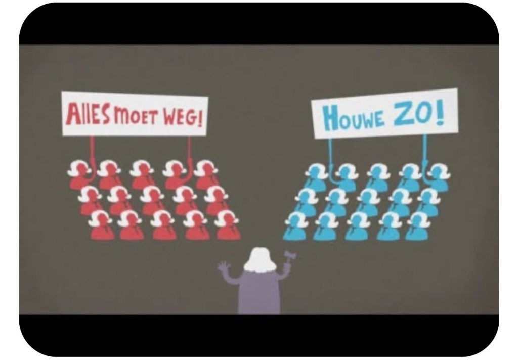 Niet omdat we het altijd eens moeten zijn maar omdat samenleven vraagt om geven en nemen, om luisteren, om samenwerken aan de best mogelijke toekomst voor iedereen. Daar zou de politiek op moeten investeren! Dat zou de mensheid juist goed doen. Elkander wegzetten als ongeloofwaardig, woke etc is het toppunt van “domheid” . We hebben elkaar nodig. Nederland die juist zo goed was in het zoeken naar de middenweg, elkaar overtuigen in discussie maar ook accepteren dat een ander een goed punt heeft, is geworden tot “ wij en zij” zonder argumenten, oneliners , in de overtuiging dat er maar één waarheid is
