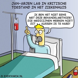 Maar vandaag kreeg ik een tip, en na wat nadenken heb ik het uitgewerkt. Wat zou het zijn dat de dagen die je in het ziekenhuis ligt soort bonuspunten krijgt. Per dag, zeg maar, 20 punten. Met die bonuspunten kun je privileges opbouwen. voor 400 punten krijg je 5 dagen lang een éénpersoonskamer, voor 300 punten een speciaal voor jou gemaakte maaltijd op bestelling voor 4 dagen. Voor 200 punten komt je favoriete verpleegkundige je verzorgen (dat wordt moeilijk kiezen) Voor 100 punten krijg je koffie uit de automaat (en die privilege heb ik al gewonnen) voor 50 punten mag het bezoek een half uur eerder komen of langer blijven. Etc. etc.etc. Uiteraard is de prijzenpot aan te vullen met allerlei andere ideeën… (lijkt me wel leuk als de verpleging hier dansend en zingend binnenkomt) en wellicht is het leuk om er per week een bonus in te gooien, bijvoorbeeld deze week in de reclame koffie uit de automaat 20 punten….
